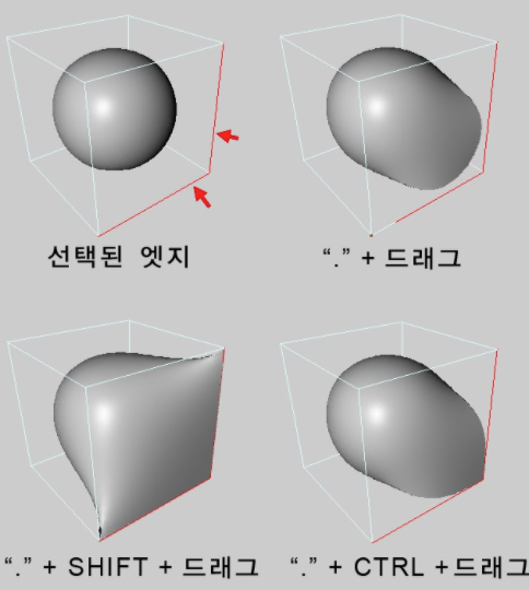 엣지 선택 "."+ 드래그